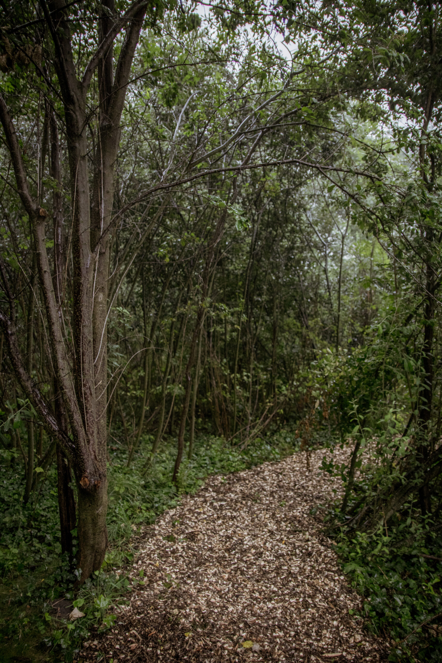 Landart Dziupla i Meander – żywy tunel z wierzb, kadrujący widok na niebo, oraz wijąca się ścieżka z bylinami i trawami;